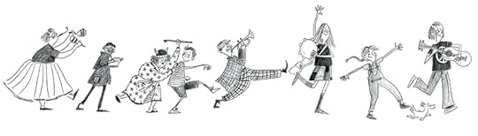 Everyone in the town will be baking Gingerbread Dragons, amongst other goodies, to celebrate in the Unquiet Night festival held in Dundoodle’s main square. And they’ll have their own dance around the streets, as so brilliantly illustrated by Claire Powell: