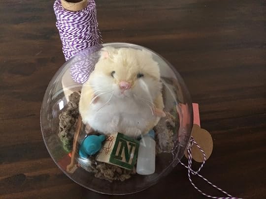 140mm clear acrylic fillable ball ornaments (available at Small stuffed hamsters (we used this one from Amazon)