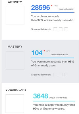 Every week, Grammarly emails you a critique of your writing. It tells you how many unique words you wrote that week and how you compare to other writers. It lists your top three errors. Mine are always the same. Misplaced commas, prepositions at the end of the sentence, and unclear antecedent.