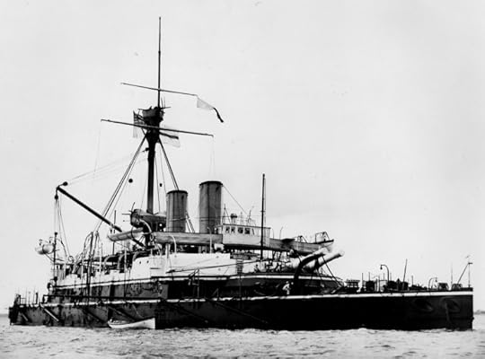 HMS Hotspur, a small and badly designed ironclad of the period. Note absence of torpedo nets at this early stage in her career