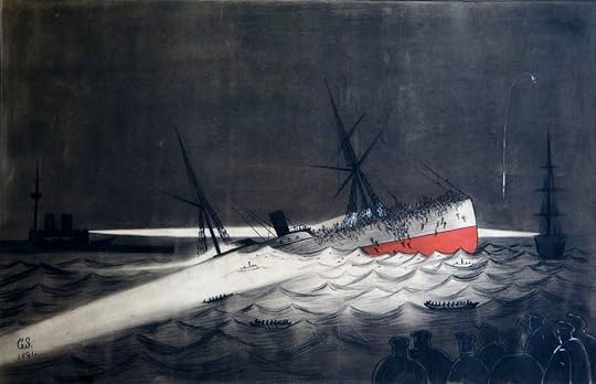 Sinking of the SS Utopia – sketch by eyewitness Miss Georgina Smith (with thanks to Gibraltar Museum & Wikipedia – Public Domain)