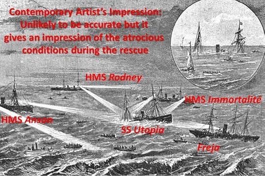 Significant though HMS Anson’s ram bow was as factor in the accident, more important still was Captain McKeague’s recklessness. The most criminal aspect of the entire disaster was however the provision of an inadequate number of lifeboats, and the fact that a passenger ship could ever be allowed to leave port in such a state. When one reads of maritime tragedies of the 19th Century one is struck by how often this inadequacy was a common feature. It was to take the RMS Titanic disaster in 1912 to get this scandal finally eradicated but it should not have needed a catastrophe of that magnitude to secure reform. The lesson had been taught for the best part of a century – but it was not learned, and thousands of innocents, like the immigrants on the misnamed Utopia, paid the price.