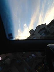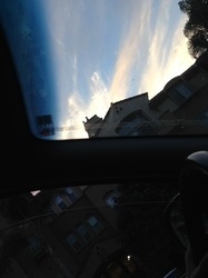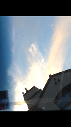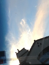 My daughter snapped this photo over a church in Los Angeles.  Tell me if you see the angel standing profile holding a sword.