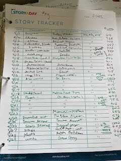 The image above is the chart I've been using to log my progress. So far, I have written over 20,000 new words this month and have started 14 new stories. I've also written a few scenes for one or another of the books I'm working on. I'd set these book projects aside to do this challenge, but if I had an idea for something that would fit in one of the books, I let that be my writing installment for the day.