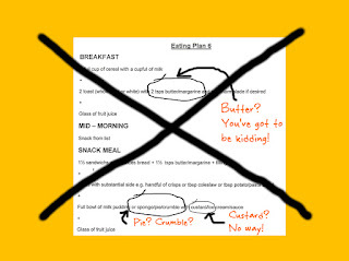 At first, I thought: "Wow! This might just work!" and on the way back from the therapy session, we stopped off at the supermarket to buy the foods shown on Eating Plan 6.