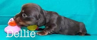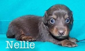Photo property of Flickennel.comNellie and Dellie are Chocolate and Tan Long Hair Mini Dachshunds. They were born April 26, 2015 to Flick Kennel Dachshund breeders in Westcliffe, Colorado, and will be able to come home to us June 21.