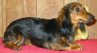 We anticipate Nellie will be around 11 pounds and Dellie may be 8 pounds when fully grown. They will look something like one of these two examples of Chocolate Long Hair Dachshunds: