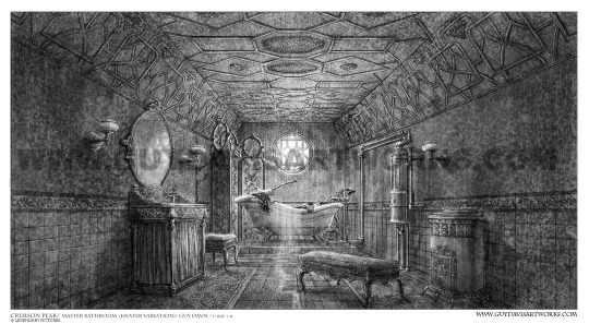 Above one of the early ghost concepts I did that later became Margaret in the film~ and below is the bathroom set design for Allerdale Hall