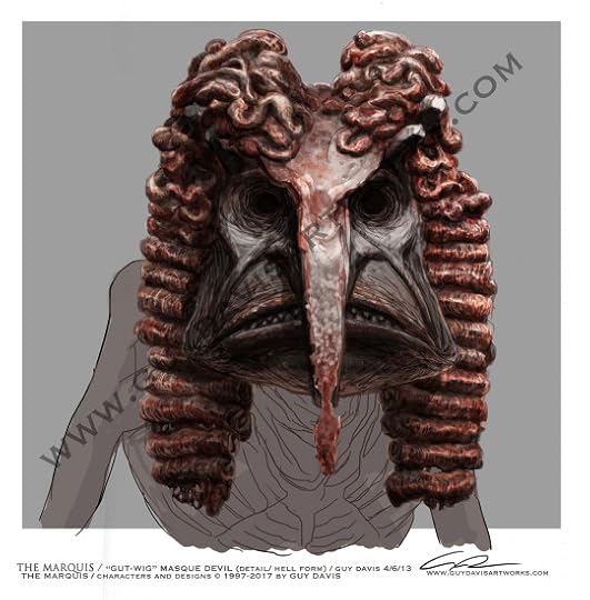 The “masque devil” originally appeared in chapter 2 of The Marquis: Danse Macabre storyline, possessing the guise of the Ministries iron punishment mask to confront the Marquis. He later turned up in the Hell scenes as a trio of torturers who gut their victims to make wonderful wigs for themselves.