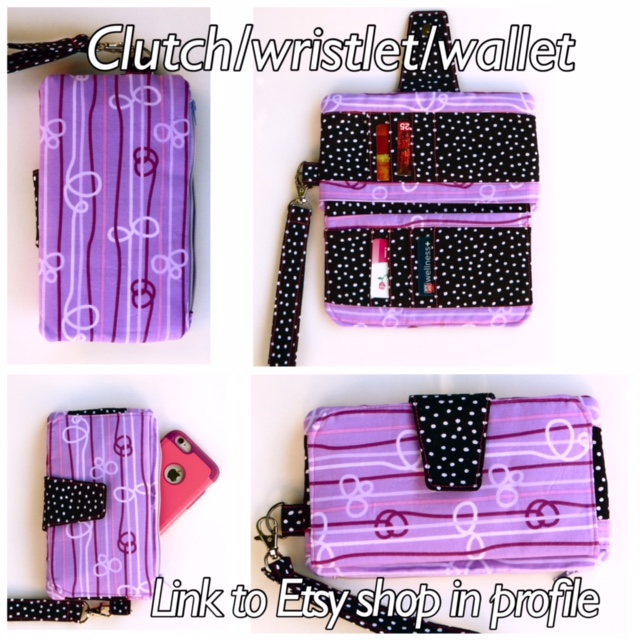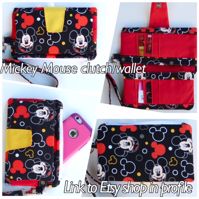 Wristlet/WalletI hope you'll click the links under the photos to check them out in more detail on the Etsy shop! I've loved making these! I'm pretty sure I'm going to make a clutch/wallet to match the Minnie Mouse cross body bag. But now I have to get back to sewing!! New tote bag in progress today. :)