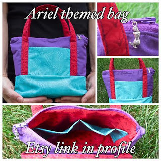 Also, I've started a brand new venture. Sewing bags!! I've really gotten into it and am having so much fun making new totes, purses, cross body bags. It's been going so well that I've been taking custom orders from friends and family and now have opened up an Etsy shop! Most of the bags I'm posting in the shop are Disneybounding themed bags. Here is a sample: