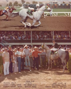 While digging through stacks of old—very old—win pictures, a massive, nearly white Quarter Horse gelding kept popping up. Anybody who followed Northern California Quarter Horse racing in the mid-seventies would remember the hoofed freight train named Head Pin.