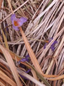 The sun then set on that idea, too, but by then the fall saffron crocus were blooming. I am a sucker for that lavender color. And such delicate flowers at the season’s end, after everything else has faded to brown.