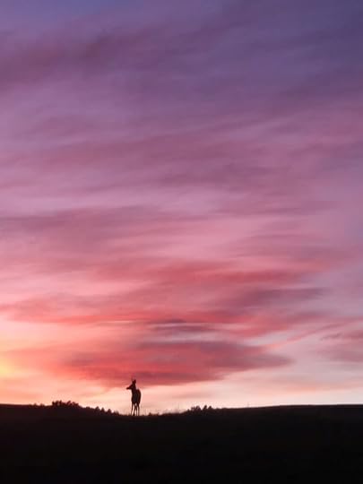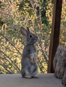 Back to watching the ravens, trying to think of fresh ways to account for their contortions on windy days, twisting skyward like broken black umbrellas. I’ll obey the sharp chirps of the juncos and throw them some birdseed; once we started feeding them in winter, our interactions have become unambiguously transactional. I’ll look for the cottontail rabbit who lives under the horse trailer, leaving trails of dimpled tracks beyond its wheeled hatch cover, evidence that he or she has not yet become owl bait. When I pause to take in the igneous stain of sunset while feeding the horses, I’ll remind myself to think of it as a provincial representation of our collective ride on the solar system’s merry-go-round.