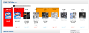 May 19 brought yet another Red Flag Warning, meaning high winds, high temperatures, and low humidity. The next day’s forecast, however, showed a Winter Weather Advisory, with potential for heavy snow. The eighth day of the fire, May 20, dawned gloomy, but the gray sky was due to low clouds rather than smoke haze. By the end of the day, it had drizzled enough to deposit almost a tenth of an inch of water in the rain gauge: our first measurable precipitation in 24 days, during what would normally have been some of the wetter weeks of the year.