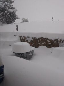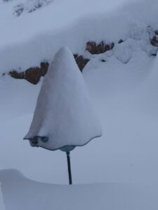 We live in an arid region, at high altitude. The weather, by default, is harsh or fickle or dramatic, and sometimes it’s all three all at once. Heavy snow in May isn’t typical, but it’s hardly unprecedented. Around this time twenty-two years ago, we were bailing out the foundation of the cabin we’d just started building. A late-season blizzard had dumped four feet of snow; as it melted, water collected inside the concrete stem walls like the world’s most ill-conceived swimming pool.