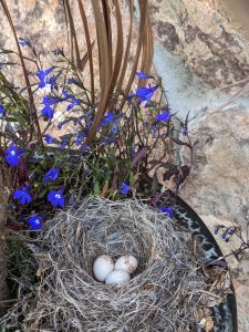 Cordilleran Flycatcher nest in the planter between the garage doors.