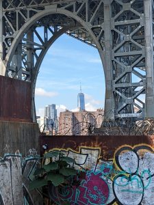 She started becoming a New Yorker by mapping her local precincts on foot. Unlike the simple grid of streets and avenues that covers most of Manhattan, the Williamsburg section of Brooklyn is a jumble. The area encompasses multiple historic towns that were platted on different orientations, creating a patchwork of neighborhoods with streets running on, and meeting at, wonky angles. The sweeping ramps serving the Williamsburg Bridge and the elevated tracks of the JMZ subway lines overlie the muddle, while the Brooklyn-Queens Expressway cuts through it all with a multi-lane slither and incessant roar. The human inhabitants are, if anything, an even wilder mashup. A more extreme contrast from the small-town homogeneity of Loveland would be hard to find within the continental US.