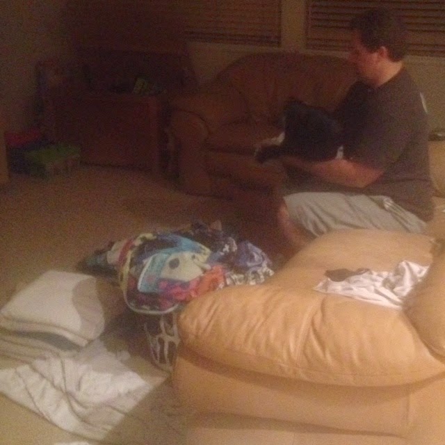 (I got home from ballet late one night. There he is folding laundry. This is a normal occurrence.)
