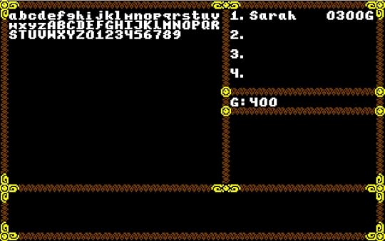Party CreationI’ve started work on the party creation screen, inspired by the one on Final Fantasy 1. Mine currently looks like this: