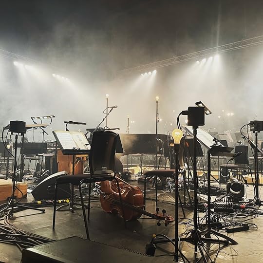 Sigur Rós start with the brand new Blóðberg, named after a bright pink flower that emerges from the cold, dark Icelandic winter each spring. There’s some similarities with the rock flower too, with Sigur Rós emerging on to a dark stage, filled with the patiently waiting London Contemporary Orchestra dressed in black and wisps of Fische