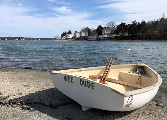 We have an eight-foot dinghy, a sturdy Puffin built in Maine. She’s well balanced and handles charging into minor swells. I took off from a small harbor where we live.