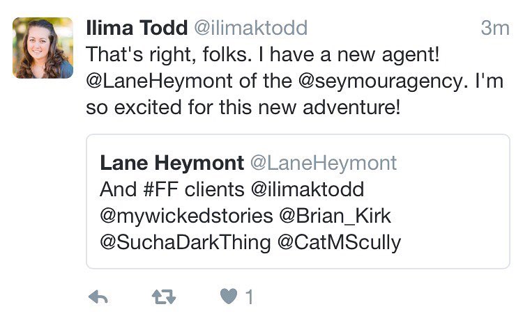 I have a new agent! After querying a new project and receiving a few offers of representation, I decided to sign with Lane Heymont of The Seymour Agency. I'm super excited to work with him and see where this new adventure will take us. Yay!