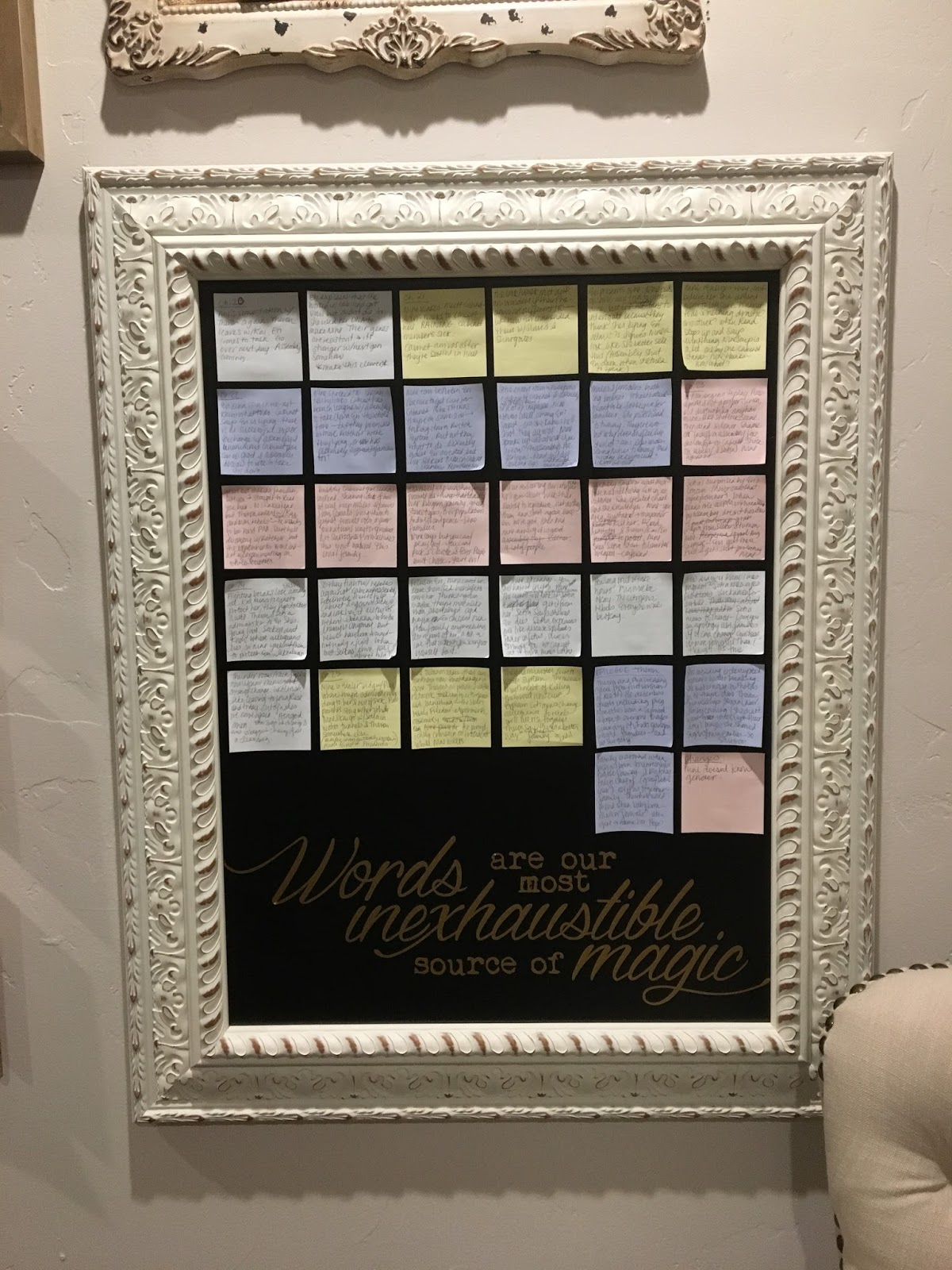 I REALLY wanted a page from one of my books on the wall, so using an overhead projector and a lot of sharpies, we made this happen. It took a LONG time, but it was so so worth it. The text is the prologue to Remake, and I can look at it as I sit from my writing desk. I love that it's a call to arms, a plea to get to work without excuses and do what you're meant to do...the perfect motivation for writing.