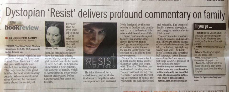 July 16 @ 2:00pm--Book launch event for RESIST at the American Fork Library. I'll have more details on this soon, but please mark your calendars as this event is going to be epic!