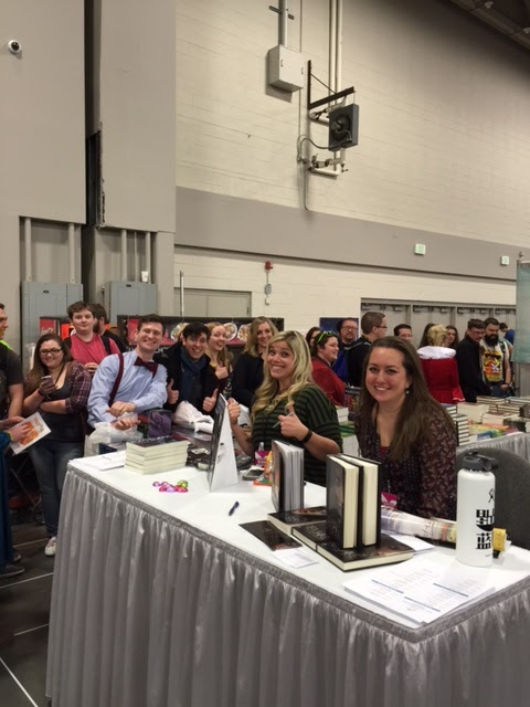 Hanging out in the HUGE signing line with Emily(CP and bestie)