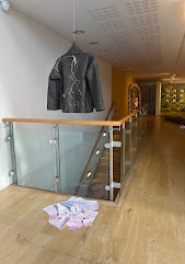Finally got to the "Composting Colonialism: Towards the Radical Garden" exhibition in the Mermaid Arts Centre in Bray, Co. Wicklow. The group exhibition includes work in various media by Irish, Spanish and British artists. "Imbued with notions of displacement, class, exile, invasion, appropriation, theft and hunger, the history of gardening and horticulture on the island of Ireland and beyond contains the very recipe of colonisation, from the plantations of both people and forests to the introduction of monoculture food and cash crops." Here are two installations I particularly liked: Siobhan McGibbon's MAKING ODD: A GOAT, A BEE, A PSYLLID, FUNGUS, KNOTWEED AND ME (stitched shibori, Japanese knotweed, nettle and montbretia plant dye, thistle, Old Man's Beard, ground elder, cotton, latex, unreal clay) and Elida Maiques' BIOMULCH JACKET (SEEDED), agricultural fabric, open-pollinated Irish and naturalised seeds, plant-dyed wool yarn, hemp thread, wooden hanger, paper and watercolour. You can see the wonderful rest of them up to October 4, this week. #Irishart #Wicklow #colonisation #radicalgardening