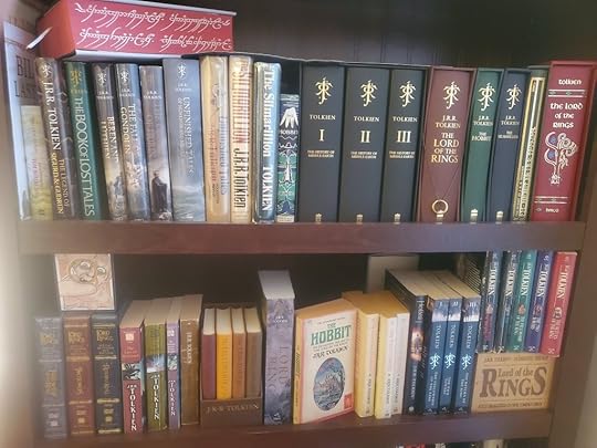 So far this includes two copies of the first US paperback edition of The Hobbit, a first UK and a first US edition of the Silmarillion, and then… well… all the rest of that. If you ever need an easy gift for me… just get me anything Tolkien that isn’t on this shelf. Boom- we’re besties. (update: I know also have The Nature of Middle-Earth hardcover next to that Unfinished Tales on the top left)