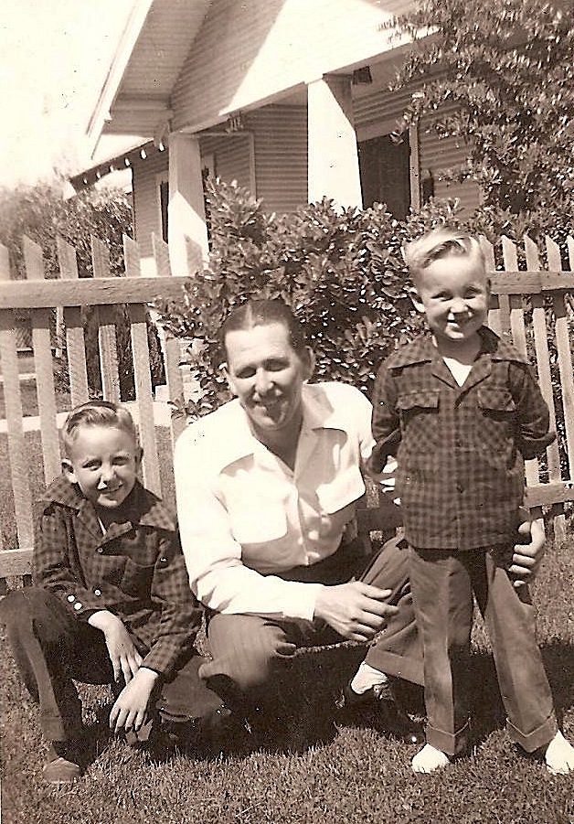So when I was about eight years old Pappy opened a plumbing shop across the street from our house at 108 Las Flores Ave., Modesto, CA. At that time I was beginning to pressure my mother to allow me to join some of the older boys in the neighborhood at Dry Creek, which was about a quarter mile from our house. By the time I was 9-10 years old, my life was full of adventure, alternating between playing with my friends at “the creek” and hanging out across the street from the plumbing shop. Sometimes I would spend several hours playing in the neighborhood with a conglomeration of kids of various ages. There were a couple of teenage boys that I admired who allowed me to “hang out” a bit with them. Both would serve in the Korean War, one as an air force fighter pilot, who was killed in combat and the other with the 82ndAirborne. Closer to my age were the Wilber boys who lived a block away and always seemed to have some kind of ball game, or adventure of one kind or another planned, or going on.