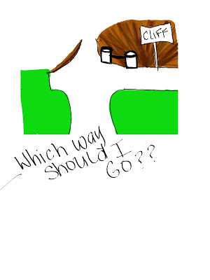 And that's when I ran into those two wooden posts next to the CLIFF sign, which was smack dab in the middle of those choices.