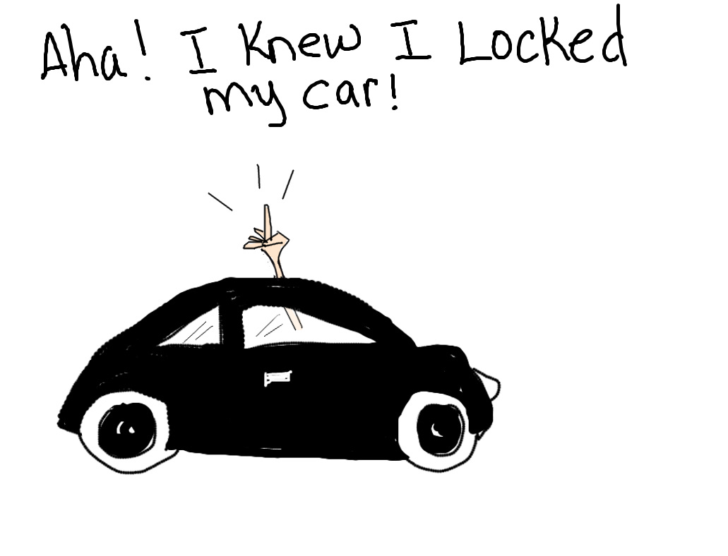 I then proceed to cautiously and non- guiltily view my surroundings to make sure nobody was calling the cops for breaking into their car. Or worse... taking proof of this incident on their phone.