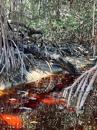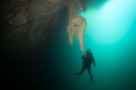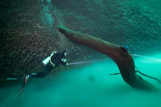 My birthday ‘treat’ is another deep dive site, Angelita, with a lovely dive leader Elisa; somehow I feel more relaxed with another woman! Here there is a sulphate layer at about 30 meters and we glide over the top, dodging petrified tree stumps, again admiring the stalactites and rock formations. I am not cold thank goodness.