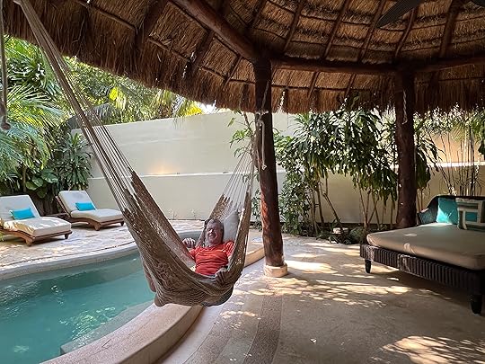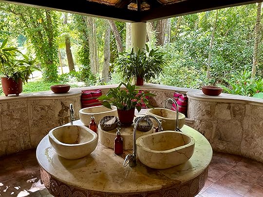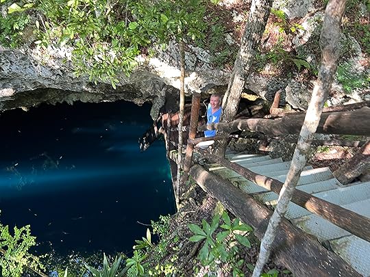 Although the hotel is secluded, luxurious and has amazing service, swimming is not easy as it is rocky, and we are effectively marooned (no nearby beach bars) so any outing is an expensive taxi ride. But the most stupid thing of all – mea culpa – is that we are not that close to the cenotes, which are all near Tulum and a good hour plus away…so I spend most of the first week being cross with myself for a rookie booking error.