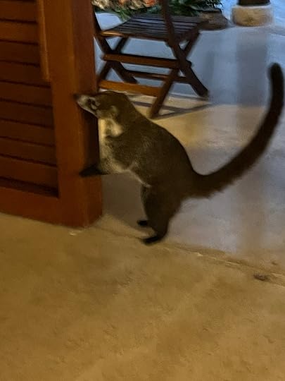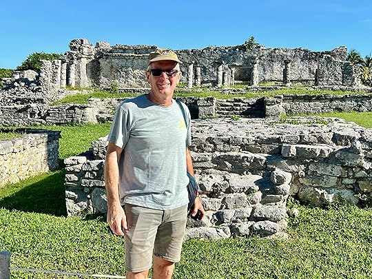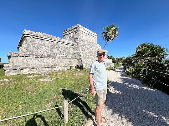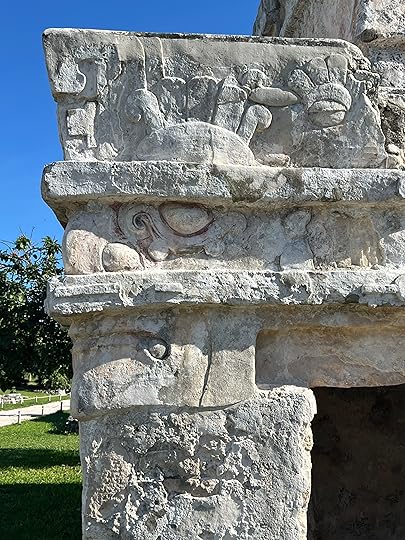 The Tulum ruins, and my two birthday visitors, a huge scorpion and a big male racoon – the exclusivity is confined to humans not fauna! As it turns out, despite its position on the sea-front, Tulum his the least impressive of the Mayan sites we visit, architecturally, and it is much later (13-15th centuries) towards the end of the civilisation, when the Spanish invaded