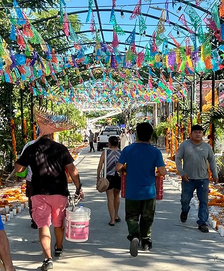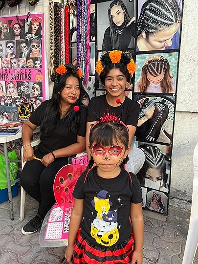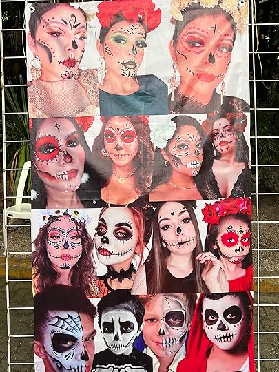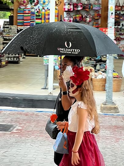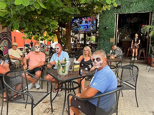 and expeditions to the Halloween celebrations in the town of Playa del Carmen, followed closely by celebrations of Mexico’s biggest holiday, Day of the Dead. Halloween is big here and the children parade with their responsible adults, dressed up to the nines. Tourists also get their faces painted, and the town is decked out in spooky paraphernalia. Even our cocktail waiter looks the part!