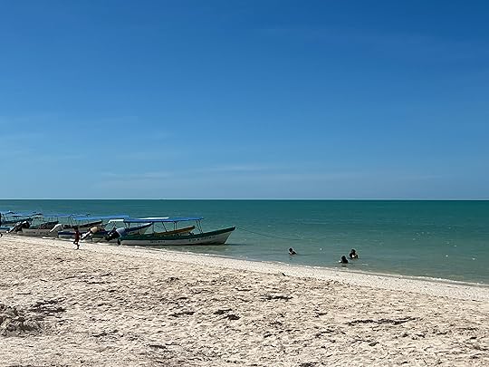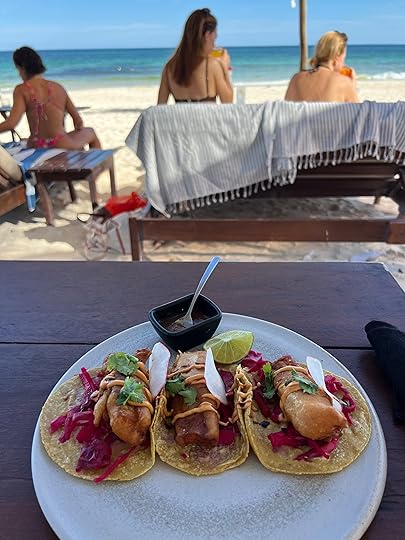 Elisa drops us off at Tulum proper so we can see what we’ve been missing – the beach is gorgeous and swimming lovely, but we are told Tulum is now run by cartels and is not so nice any more. Perhaps our exclusive hotel has some advantages. Proof of cartels is evident in that our taxi driver from Playa is told he can’t pick us up so we have to negotiate a ride home…which is easier than we thought as we were envisaging having to catch a collectivo or shared taxi! But my birthday is slightly marred by all this uncertainly.