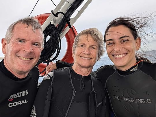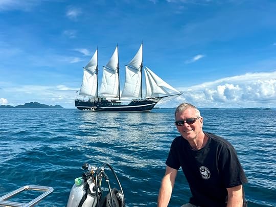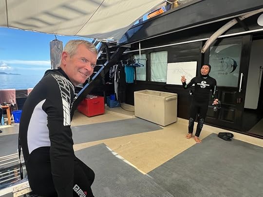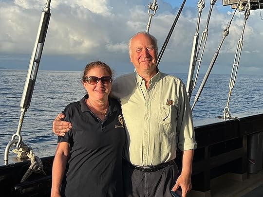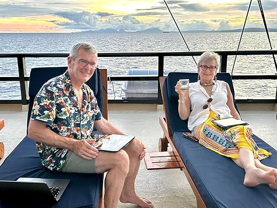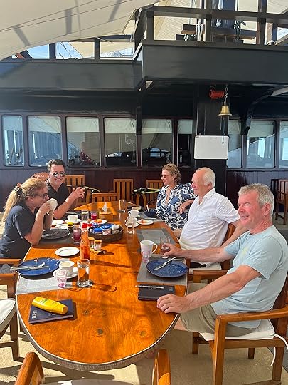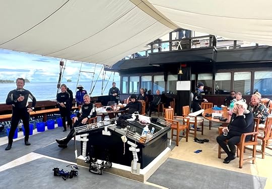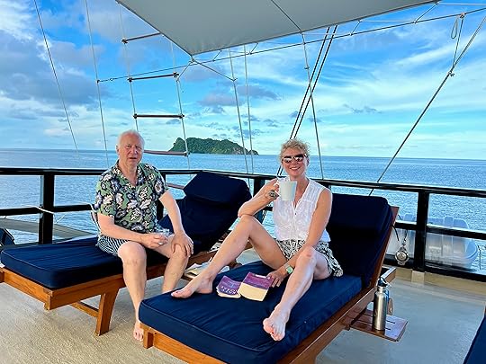 This is our fifth time on this magnificent boat. We are thrilled to be going with co-owners Simon and Eira Day and some friends of theirs, Julian and Leah, making up a good British contingent. In fact we are lucky in that the majority of our fellow passengers are delightful and fun; we are specially thrilled to be with Janusz and Alicja Draminski, renowned underwater photographers, despite being in their 80s!