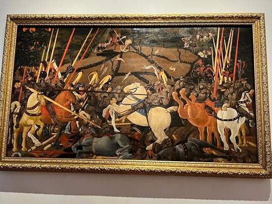 Monaco’s Adoration of the MagiAnother extraordinary painting showing the transformation of art is Uccello’s The Battle of San Romano c1435-40 – again the sense of perspective and the horses (some a bit contorted to be sure) all communicating live battle blood and gore.