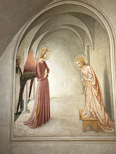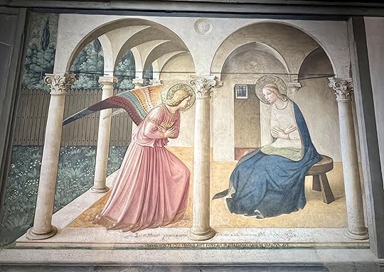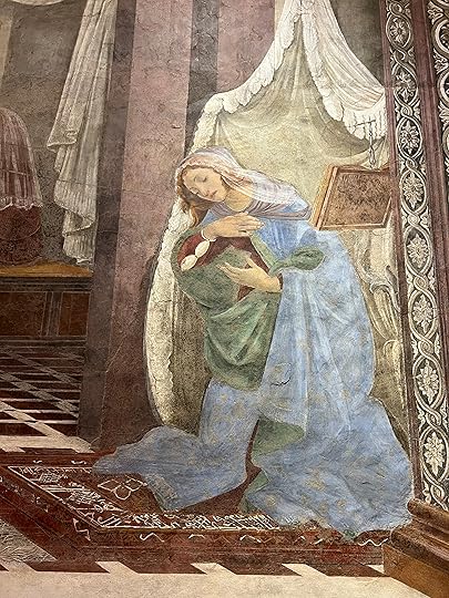 Of course everyone goes to see THE Botticelli, but I rather prefer the details from the The Spring (right) and this annunciation scene, but I can’t find the attribution.