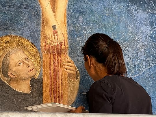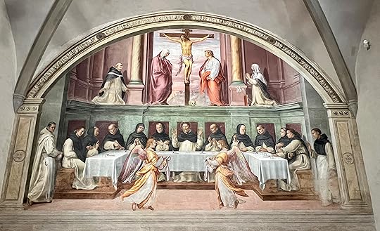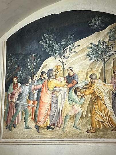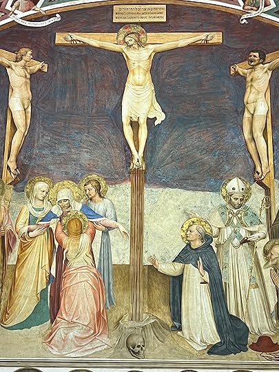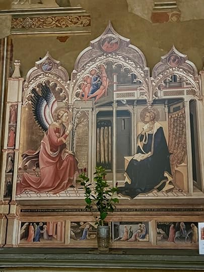 In the morning – after a delicious dinner nearby – we are left to our own devices as Debbie has other things on. But she has given us a route, so we wander over the Arno, stumbling across several Chinese bridal couples posing for the obligatory wedding photos, before visiting the Santa Trinita Basilica to see the Lorenzo Monaco frescos, ‘one of the master pieces of the 14th century’ and the Adoration of the Shepherds by Ghirlandaio.