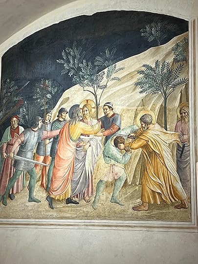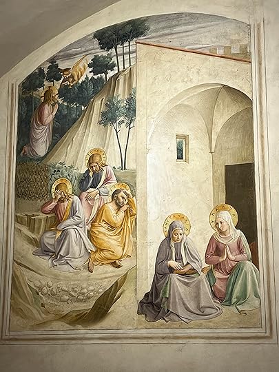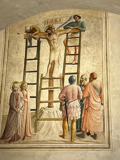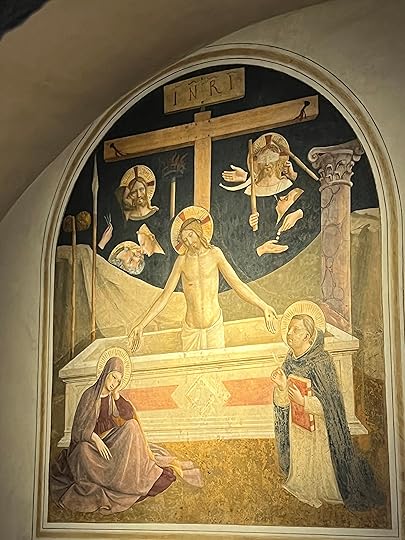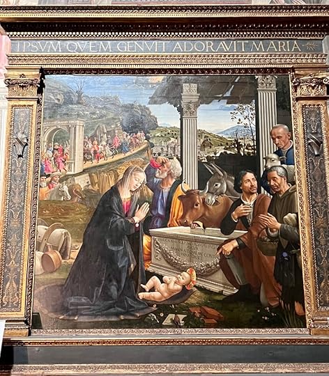 The Adoration the Shepherdsand, after a coffee and a croissant, passing through the Duomo square, heaving with people, stopping only to admire the great bronze doors, paying a massive 18 Euros to visit the San Lorenzo church – somehow we managed to miss the Medici tombs in another chapel – before going north via the market and a bag shop (cue spending spree) to the San Marco museum, home to the Fra’ Angelico frescos.