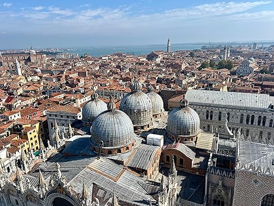 Straight to San Marco in the morning – heaving, unsurprisingly. After a long struggle with online registration (the apps seem to want every last detail of your personal info which is suspicious) we manage to get tickets to the Campanile. It is a gorgeous day and the views, 360 degrees, are simply stunning. We decide to give the Doge’s Palace a miss as the queues are appalling, and it requires registering for yet another app, which I can’t face.