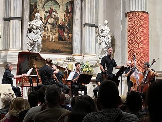 After a rather mediocre early supper, we go to the church of Santo Stefano, where the Interpreti Veneziani frequently play Vivaldi concerts – The Four Seasons being the most popular naturally. The cellist is an act on his own! It is packed.