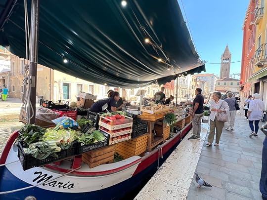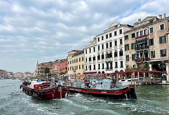 The early morning is when the action happens, before the tourists are up and about. Great barges of soft drinks and groceries, dredgers, other commercial boats, all jostle for space on the canal. The palazzos, now mostly big hotels, sit serenely on the water. We feel that we have covered a lot of ground in two short days.