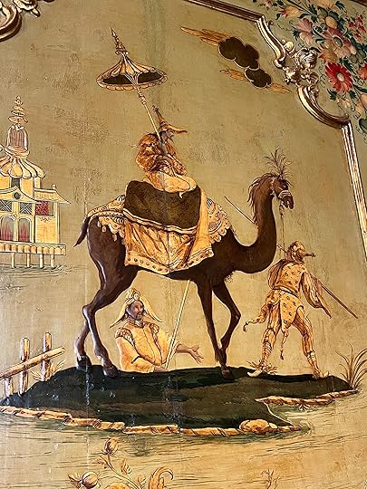 The grand ballroom, with its chandeliers and frescos is impressive, as are many of the frescos and paintings. Perhaps the most famous works are the early Canalettos, some of them the only pieces still in Venice. I also love some of the Chinoiserie, a panel of which – this lovely camel – is reproduced below.