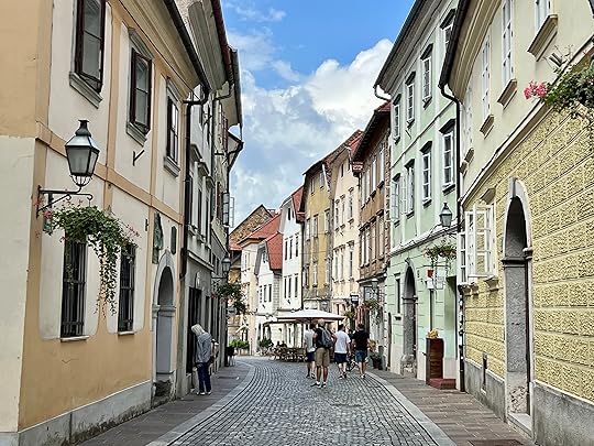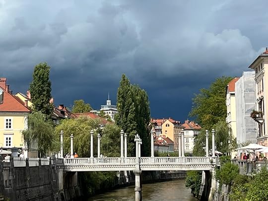 We arrive in Ljubljana in pouring rain. We are staying in the centre and everything is walking distance. It really is a charming city, very Austro-Hungarian – in fact it reminds me of Brno, but with a lot more tourists.